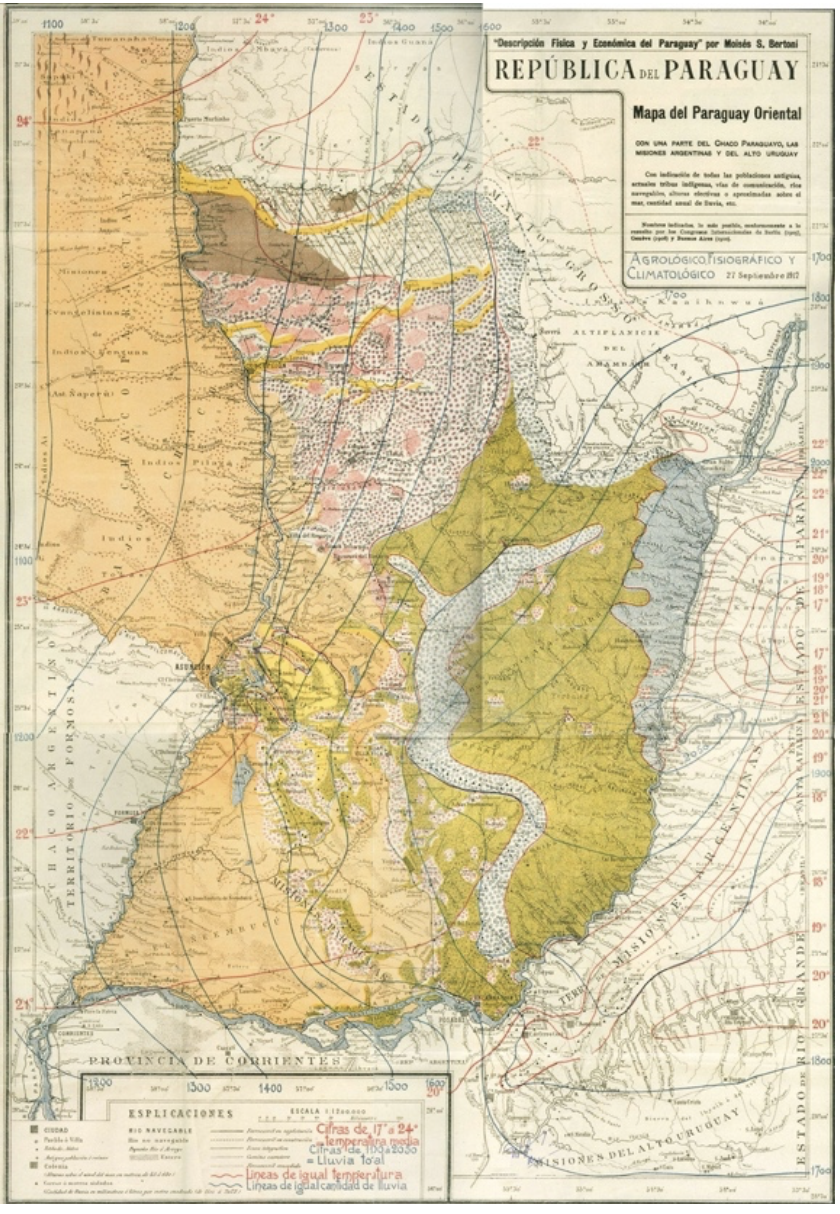 Mapa Agrológico, Fisiográfico y Climatológico del Paraguay – M. Bertoni. 1912. (Gentileza Lic. Geol. Marcos Fleitas). Fuente: https://www.geologiadelparaguay.com.py/Mapas.htm