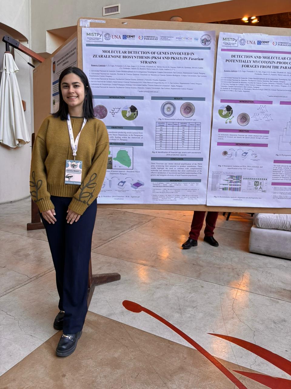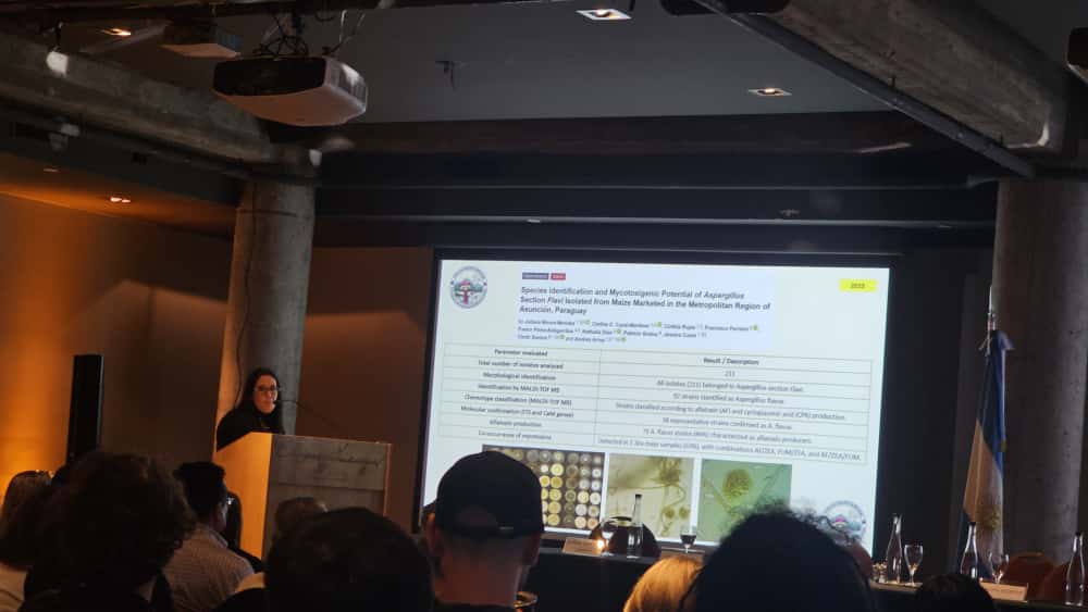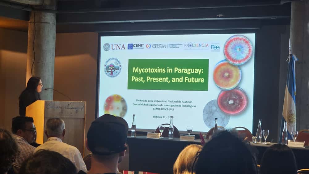 La Dra. Andrea Arrúa, líder del grupo de investigación Mycology Investigation and Safety Team (MIST), brindó la conferencia “Micotoxinas en Paraguay: pasado, presente y futuro” en el Simposio Micotoxinas en América Latina. Esta conferencia resumió la la información sobre micotoxinas en nuestro país generada en los últimos cinco años. La investigadora fue invitada en el marco del PINV01-37 “Detección e identificación de especies de Fusarium y micotoxinas asociadas a pasturas destinadas a la alimentación bovina”, financiado por el Consejo Nacional de Ciencia y Tecnología de Paraguay.