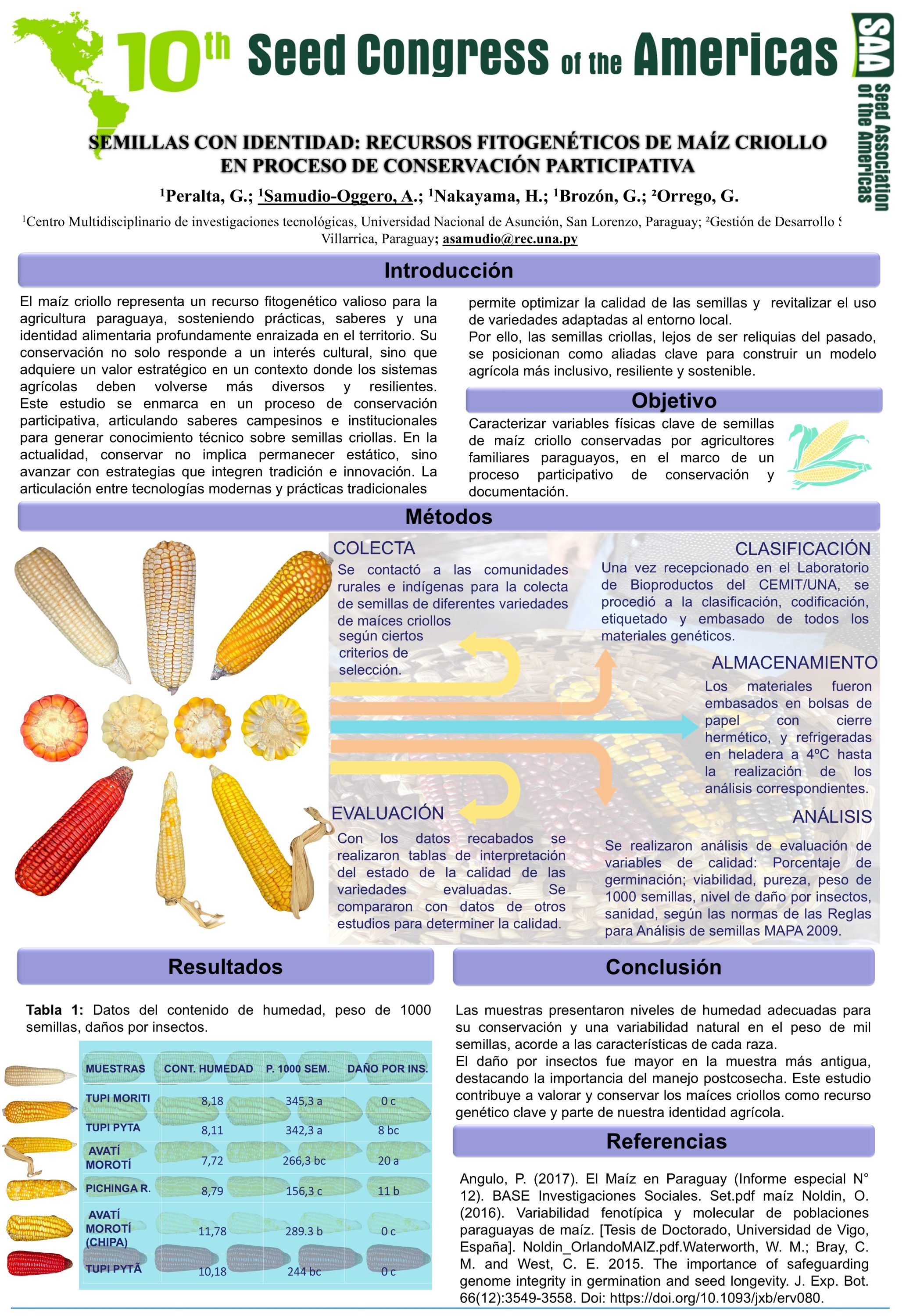 Un estudio liderado por el Ing. Agr. Antonio Samudio MSc., investigador del Centro Multidisciplinario de Investigaciones Tecnológicas de la Universidad Nacional de Asunción, fue presentado en el Seed Congress of the Americas (Congreso de Semillas de las Américas) y obtuvo el tercer puesto en la categoría póster.