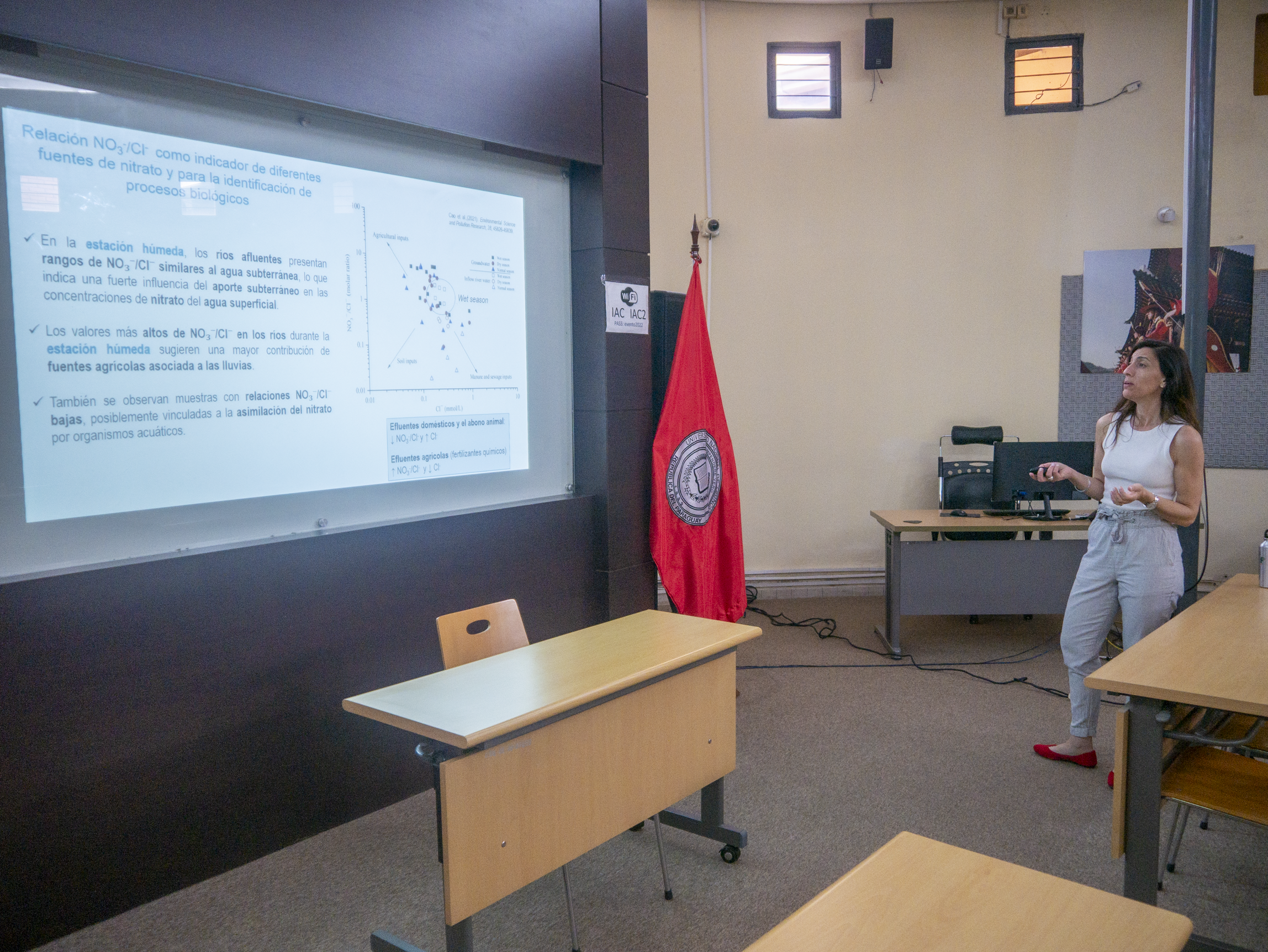 La Dra. Asunción Romanelli es investigadora adjunta especializada en Limnología e Hidrología Isotópica, cuya labor se enmarca en el área de Ciencias de la Tierra, del Agua y de la Atmósfera. Su línea de investigación se centra en el uso de trazadores isotópicos y químicos para comprender el origen, la transformación y el destino del nitrógeno en ecosistemas acuáticos asociados al flujo subterráneo, aportando un enfoque técnico fundamental para el análisis y la gestión de la contaminación por nutrientes en sistemas hídricos