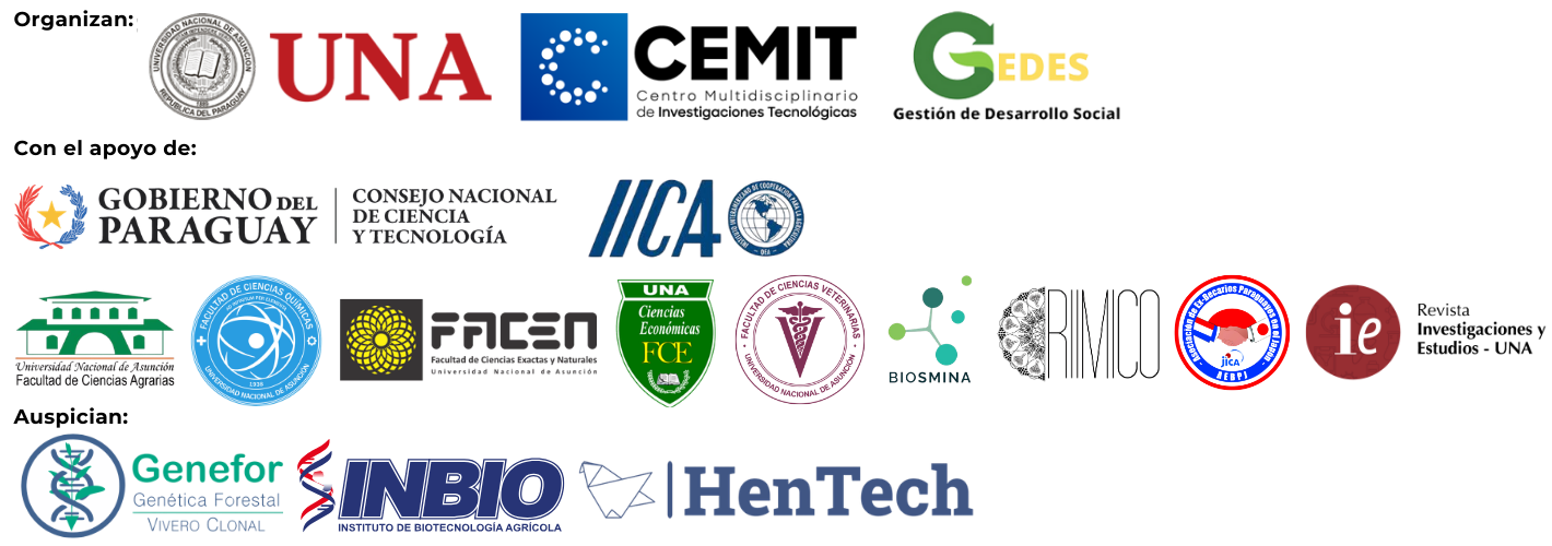 El Tercer Encuentro de la REDBIO Paraguay es organizado por la Organización Gestión de Desarrollo Social (GEDES) y el Centro Multidisciplinario de Investigaciones Tecnológicas de la Universidad Nacional de Asunción (CEMIT-UNA) los días 13 y 14 de abril de 2026 bajo la consigna “Innovación para un futuro sostenible”.